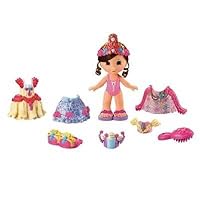 Mix, match, snap and style! This beautiful princess is a perfect dress-up friend for even the youngest girls. Chunky feet make her easy to stand, and snap-on clothes make her easy to dress. It's fun to comb and style her soft hair, then mix and match clothes and accessories for any number of activities.